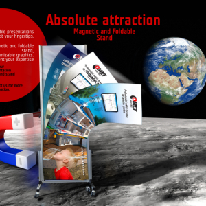 Effortlessly present your expertise with our magnetic and foldable stand. Customize the graphics to match your company’s needs, making it ideal for presentations on the go or in your offices.