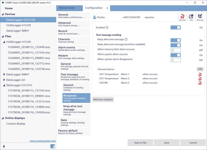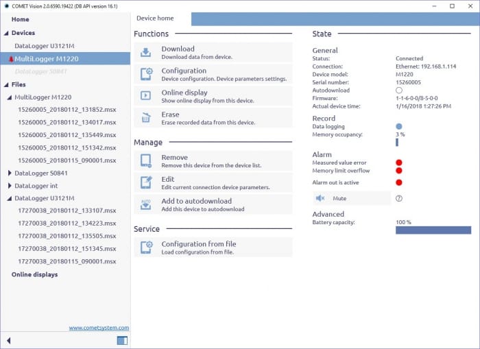 COMET Vision program is designed for communication with COMET Dataloggers Sxxxx, Rxxxx and Multiloggers Mxxxx, read out the configuration of the device and setting up the parameters.