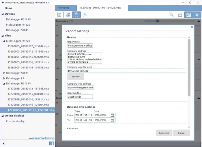 COMET VISION - Software for COMET Dataloggers Sxxxx, Rxxxx, UxxxxM, Commeters Dxxxx and Multiloggers Mxxxx.