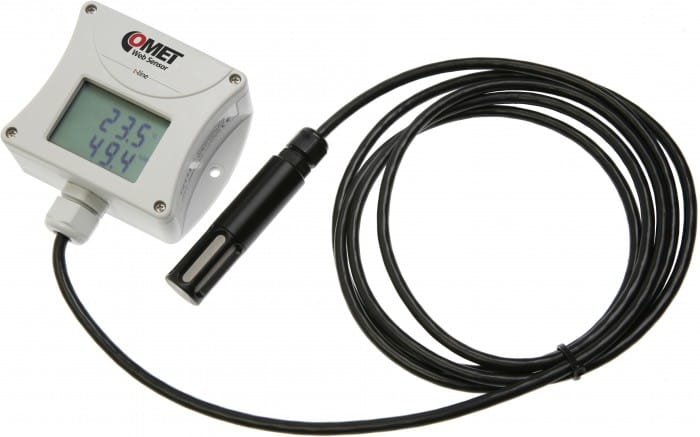 Web Sensor with relative humidity and temperature probe. The device is supplied with T+RH probe on the cable.